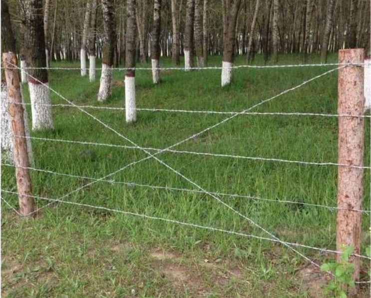 防爬刺絲剌網(wǎng)和立柱搭配使用效果好,每道刺絲刺網(wǎng)之間的間距一般為15- 25公分,高度1.8米,需要9道。農(nóng)場畜牧業(yè)常用的是這種,中間的立柱我們采用方鋼或者是圓鋼使用。支撐立柱焊接固定鉤子,把防扒刺絲剌網(wǎng)固定上面,把勾子拍下去即可。這是常用做法。