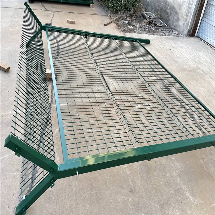 7、總高度3.6米防沖跳隔離網;主體結構采用立式Y型柱,表面處理:原材料網絲和立柱采用浸塑處理,表面無針孔、開裂、漏塑、塑液流淌等不良現象。