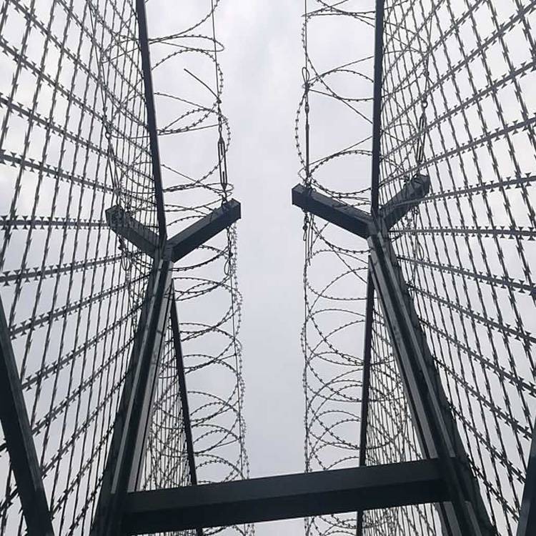 監(jiān)獄、看守所巡邏道隔離網(wǎng)上部安裝刀片剌網(wǎng)(刺絲滾籠) ,刀片刺網(wǎng)具有嚇阻、防翻越等效果材質(zhì)堅(jiān)硬,高強(qiáng)度高張力,造型設(shè)計(jì)獨(dú)特,不宜觸摸因而能達(dá)到極好的防護(hù)隔離效果。巡邏道隔離網(wǎng)還具有施工簡(jiǎn)便經(jīng)濟(jì)實(shí)用等優(yōu)點(diǎn)。