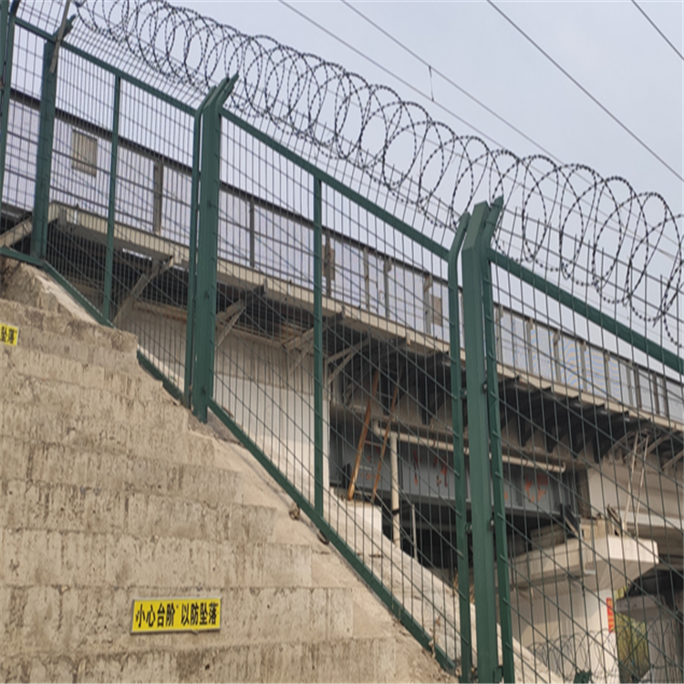 鐵路護欄網具有防腐,防老化,抗曬,耐候等特點.防腐形式有電鍍,熱鍍,噴塑,浸塑主要用于鐵路封鎖高速公路護欄及開發區圍界和場區圍網使用。