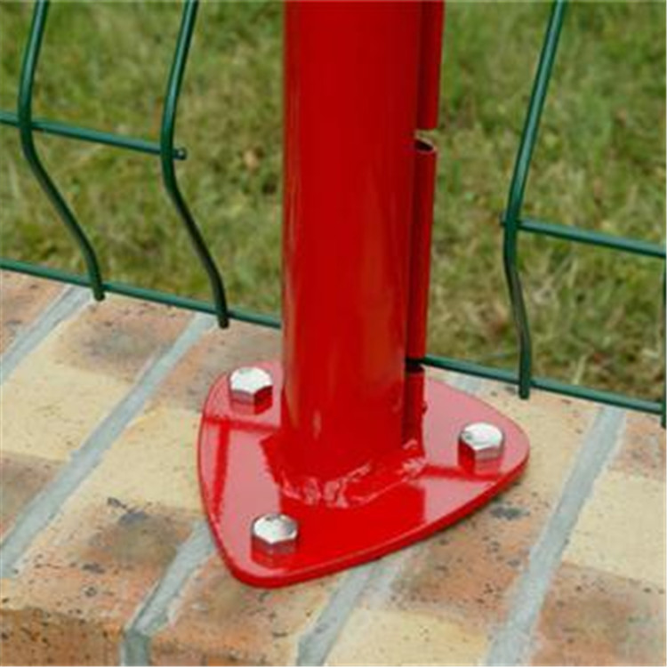 由于桃型柱護欄網的網片采用獨特戰斧式設計,使產品整體線條更流暢。立柱的凹槽式設計,立柱和網片之間無需任何連接件,成為無法拆卸的整體更安全。立柱有底盤式、底座式、懸掛式等多種款式,滿足您不同場地安裝。可在立柱項端安裝刺絲和刺圈增加防護場地的安全。
