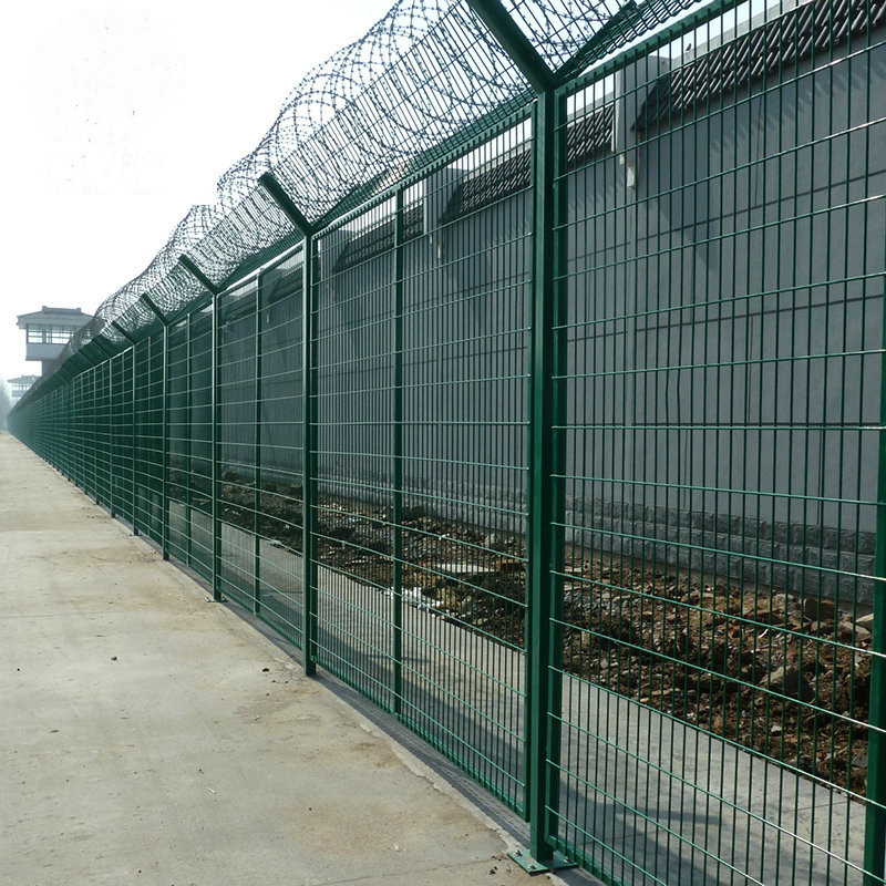 形、長(zhǎng)方形,也可以焊接成菱形,也可以直接采用刀片刺繩焊接網(wǎng)或鋼板網(wǎng)材料的網(wǎng)片,還有造價(jià)較高的梅花刺片和358密紋網(wǎng),然后在網(wǎng)片的基礎(chǔ)上四周焊接邊框,防腐進(jìn)行pvc浸塑或噴塑處理。頂端安裝刀片刺繩,刀片剌繩擁有鋒利的刀片,手不能握,可以阻止非法分子的攀爬,從而使鋼網(wǎng)墻從外形上邊可以起到震撼的作用。