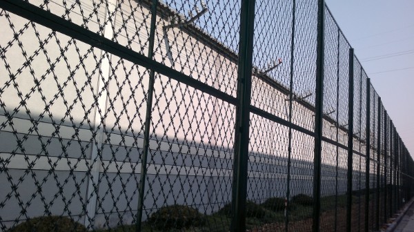 監獄鋼網墻刀刺隔離網防攀爬金屬隔離網是一種新型的防護網 ,刀刺焊接隔離網是由刀片型直線刺網交叉焊接成型。刀片刺網的制作工藝并不是非常困難,只要具有特殊的機械和熟練的生產技術都可以生產出完美的刀片刺網。沖壓成型的刀片需要與高強度芯線擠壓包裹在一起,芯線一般為熱鍍鋅或者不銹鋼材質。鋼絲做芯線組合而成的防護器材,刀片刺監獄鋼網墻具有嚇阻、防攀爬、防翻越、抗沖擊、抗剪切等良好的震懾作用,材質堅硬、高強度張力,造型設計獨特,不易觸摸,因而能達到極好的防護隔離效果。監獄鋼網墻主要采用高強度的刀片刺網與普通防護網的結合,由Y型立柱、加強型焊接網片、安全防盜連接件組成。專用于監獄、看守所、警戒線軍事基地等高安全領域。