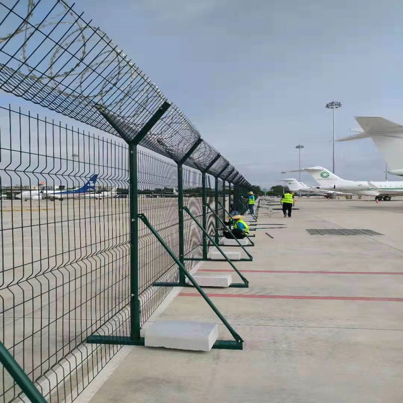 機場鋼筋網(wǎng)圍界是一種高安全隔離防護網(wǎng),一般由鋼筋焊接網(wǎng)、Y型防護立柱以及蛇腹式刀刺網(wǎng)等幾大主體組成,既有良好的通透性,又能起到強有力的安全隔離防護效果,同時美觀大方,與周圍環(huán)境以及任何景觀、設(shè)備都能完美相融合,因此機場鋼筋網(wǎng)圍界常被大量應(yīng)用于機場隔離,監(jiān)獄防護、軍事基地圈護等特殊地帶的安全防護。